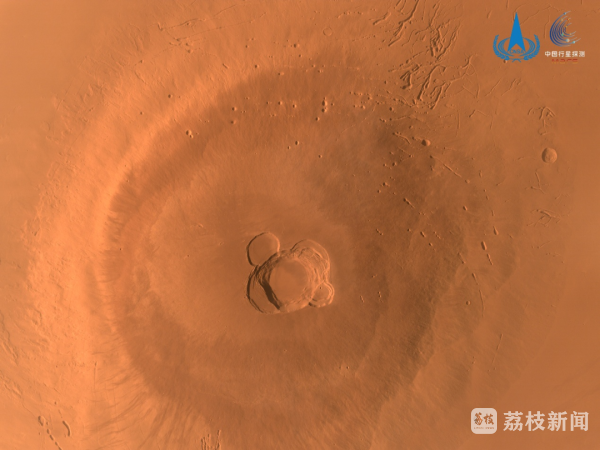 图1 中分相机拍摄阿斯克拉山影像,直径456千米,高18千米,图像显示了阿斯克拉山顶的火山口特征,存在多个火山口坍塌事件。