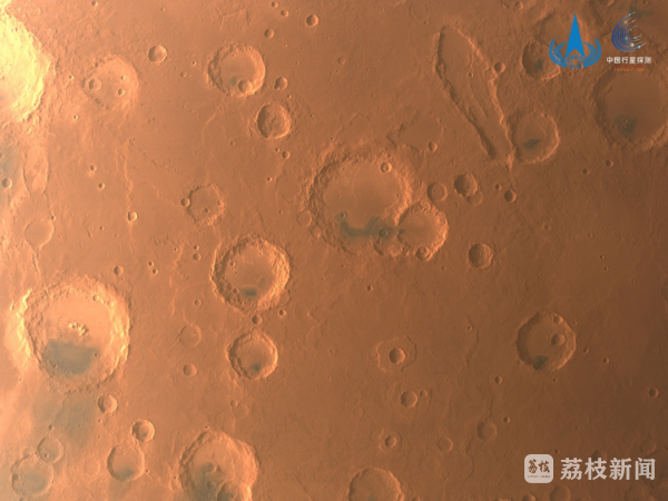 图4 中分相机拍摄阿拉伯高地撞击坑影像,图像展示了该地区分布的数十个撞击坑的地貌特征。