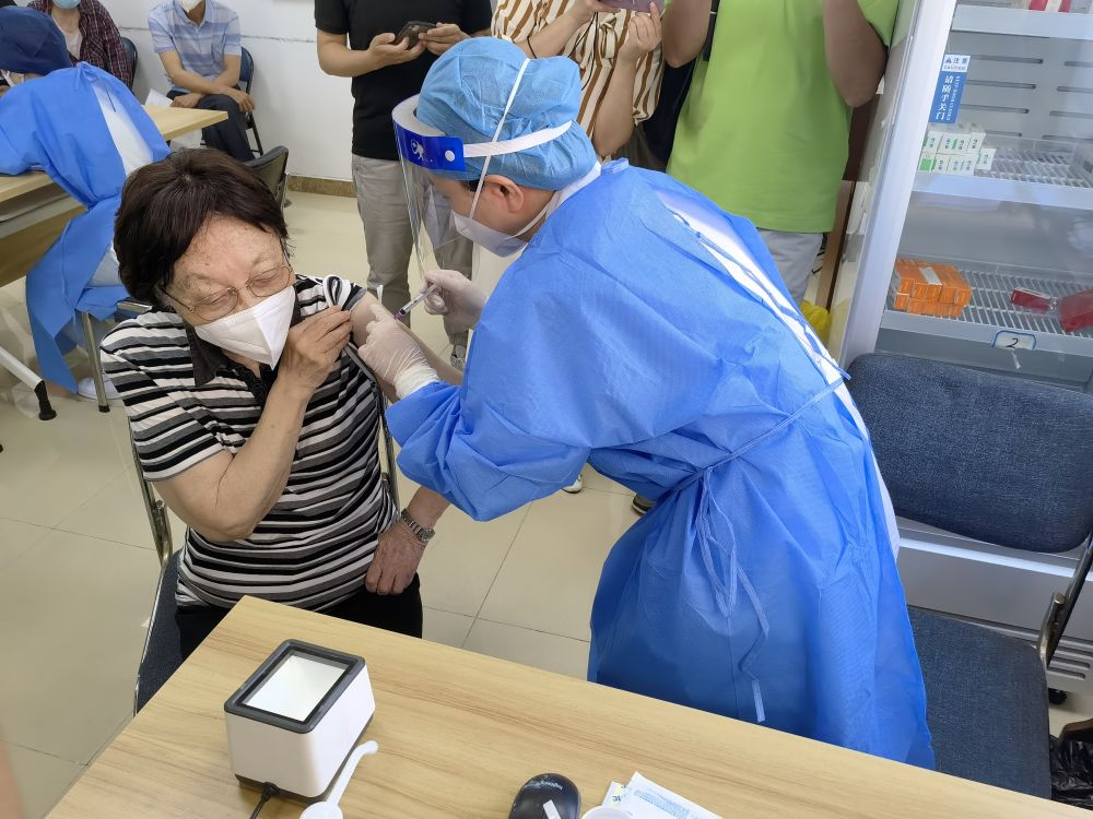 6月29日,闻玉梅院士正在接种加强针疫苗。新华社记者 郑钧天 摄