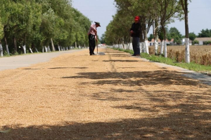 2022年6月8日,盐城市亭湖区黄尖镇,农民利用晴好天气晒粮。新华每日电讯记者 赵久龙 摄