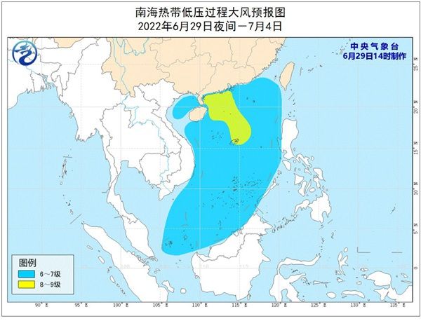 此外,南海大部、北部湾、中沙群岛及西沙群岛附近海面、琼州海峡、广东沿海、海南岛沿海将出现6~7级大风,其中,南海西北部和北部湾部分海域的风力8级,局部海域风力可达9~10级,阵风11~12级。