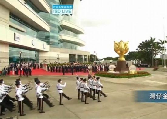 报道称,升旗仪式开始时,香港警察银乐队先奏响乐曲,香港纪律部队仪仗队和步操队,包括共有27人的护旗方队,均以中式步操进场,并由歌唱家领唱国歌,其后徐徐升起国旗及区旗,而飞行服务队的直升机也在上空飞过,纪律部队的船只在海港致敬。