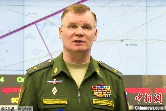 资料图:俄国防部发言人科纳申科夫发表战情通报。