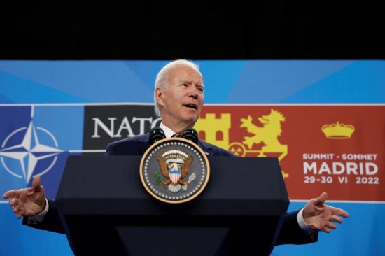 当地时间6月30日,西班牙马德里,拜登在北约峰会新闻发布会上讲话