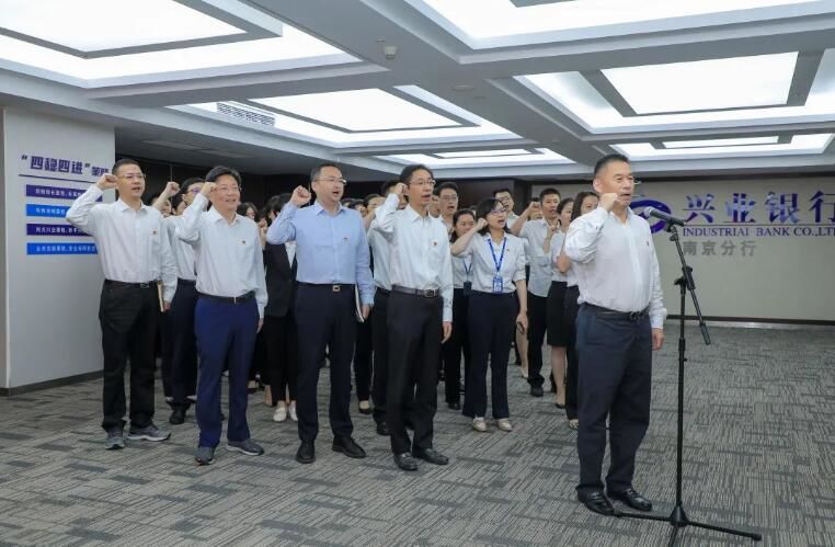 兴业银行南京分行将持续推动分行各级基层党组织和广大党员干部更加紧密地团结在以习近平同志为核心的党中央周围,发扬伟大建党精神,统筹做好“四稳四进”,推进党的建设与中心工作“双融合”,在推动自身高质量发展的同时为经济社会稳定发展贡献更大力量,以实际行动和优异成绩迎接党的二十大胜利召开。