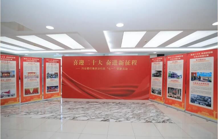 兴业银行南京分行将红色主题图文展“搬进”分行,一幅幅珍贵史料引领着党员同志们穿梭百年峥嵘岁月,重温党史感悟精神力量。
