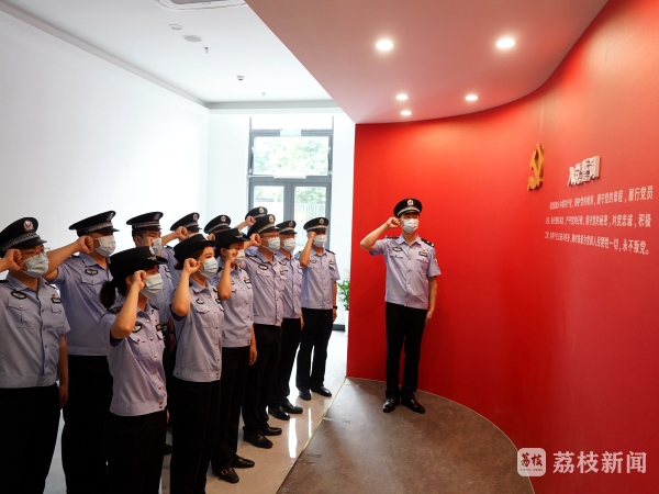 随后,全体党员民警来到中国精神主题展馆,在工作人员的带领下,认真观看了每一幅历史照片和珍贵史实资料,通过视频讲解回顾了党在发展壮大时期的峥嵘岁月,重温了伟大建党精神、延安精神、抗战精神、抗洪精神、抗疫精神等党在长期奋斗中构筑起的中国共产党人的精神谱系,为我们立党兴党强党提供了丰厚滋养。最后,全体党员民警面对党旗重温了入党誓词。“党的历史是最生动、最有说服力的教科书。驻足在一幅幅历史照片前,我仿佛回到了过去,回顾革命战争时期峥嵘岁月,追忆革命先烈丰功伟绩,领略中国精神的强大伟力,我深受震撼,倍感使命光荣。”该站青年党员民警张宏基感慨道。