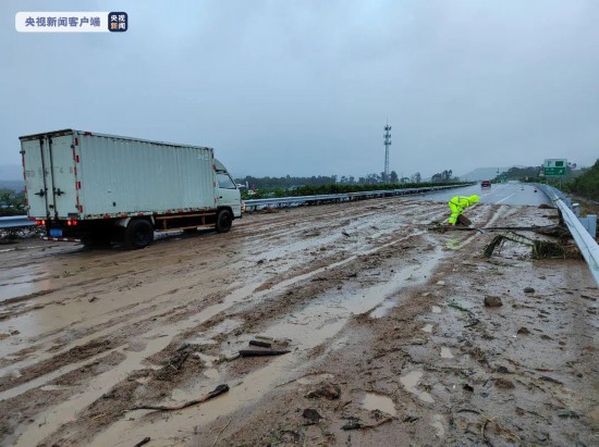 截至7月2日14时,海三高速乐东段k222+300处路面,共有约30米长、20米宽的道路路面被泥土覆盖,泥土最深处达到30厘米,公路巡查养护工作人员正在紧急清理中。