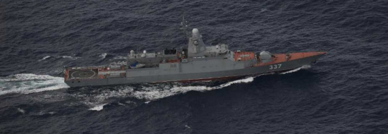 俄罗斯海军的一艘驱逐舰、一艘护卫舰以及一艘补给舰穿过与那国岛和西表岛之间海域,图自综合幕僚监部
