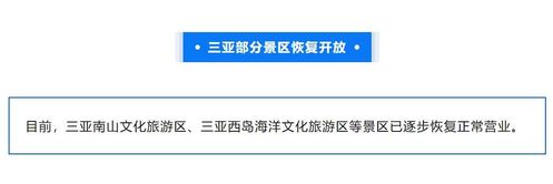 目前,三亚南山文化旅游区、三亚西岛海洋文化旅游区等景区已逐步恢复正常营业。