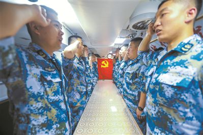 党旗所指,就是潜航方向。接下来一个月里,艇队只要靠港,政委都会带领全艇干部到荣誉室学习。