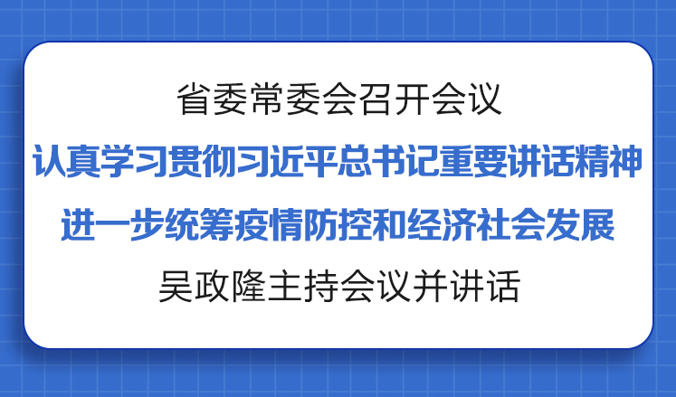 荔枝新闻讯 7月5日,省委常委会召开会议,认真学习贯彻习近平总书记在湖北武汉考察、出席庆祝香港回归祖国25周年大会暨香港特别行政区第六届政府就职典礼时的重要讲话和近期重要指示精神,研究部署当前工作,进一步统筹疫情防控和经济社会发展,坚决做到疫情要防住、经济要稳住、发展要安全,以实际行动迎接党的二十大胜利召开。省委书记吴政隆主持会议并讲话。
