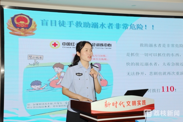 暑期是青少年溺水易发期、高发期,为进一步加强防溺水安全教育工作,避免溺水事故的发生,提高孩子们防溺水安全意识和自护自救能力,昨天(7月4日)上午,仪征市文明办、仪征市新时代文明实践服务中心联合长江航运公安局南京分局仪征派出所、仪征市春蕾爱心公益协会等部门联合开展暑期安全第一课——预防溺水、珍爱生命安全教育讲座活动。