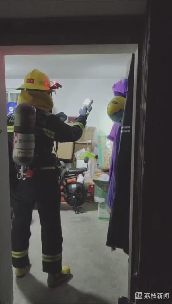 然后在消防救援人员准备收队返回时,竟发现杂物间内有多辆电瓶车在充电,随后,消防救援人员立即将电瓶车搬出房间,并及时对车主教育。