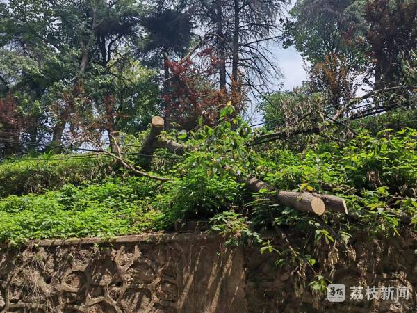 城管执法人员表示,目前他们已经要求辖区内的商家,仔细排查自己的店招门头,防止出现老化脱落的情况。为防止暴雨天气对一些居民区造成影响,城管部门对辖区内一些依山而建的小区进行了再一次的走访排查。在黑龙江路12号小区,记者看到,受到前几天的一场暴雨影响,小区围墙外的山体树木出现明显的倒伏,在此次降雨天气来临前,将由专人对现场进行监测。“只要是台风还有下雨天我们一定要到这个点进行巡查,巡查发现树木倒伏,联系园林部门,这里涉及高压电线,园林协调供电部门近期一起上门要把隐患消除。”南京市鼓楼区城管综合执法大队中央门中队副中队长李凌杰说。
