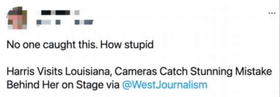 “卡玛拉·哈里斯在将路易斯安那州拼写错误的官方标志前接受采访。可以理解,因为卡玛拉·哈里斯不称职,她也会有一个非常不称职的员工。”