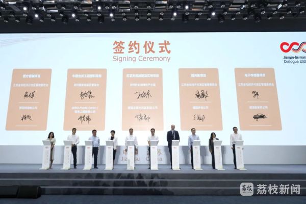 本次活动分为常州主会场和法兰克福分会场。开幕式上,常州市政府与中国德国商会签署合作备忘录,中德(常州)创新产业园与德商银行上海分行签署战略合作谅解备忘录,“德企孵化中心”落户中德(常州)创新产业园揭牌。10个中德合作项目集中签约,项目涵盖智电汽车、新医药、装备制造、新材料等多个领域,总投资额近2亿欧元。大会还围绕“科技创新、合作共赢—后疫情时代中德企业创新合作新机遇”“数字转型、智造未来—江苏德国制造业合作路径与探索”等主题开展对话。