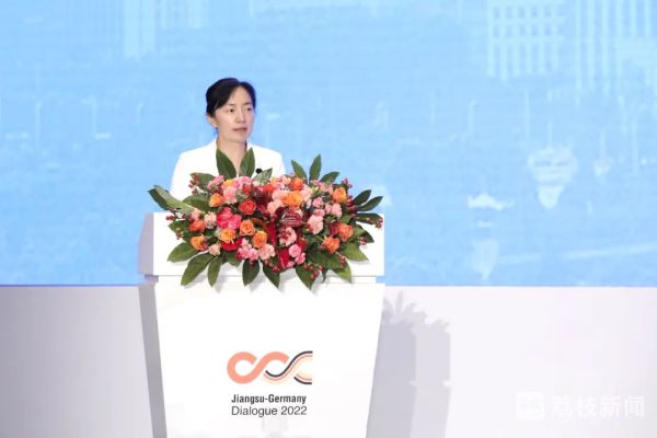 常州市长盛蕾在致辞中表示;“近年来常州聚焦‘国际化智造名城、长三角中轴枢纽’城市定位,深入实施‘532’发展战略,扎实推动高质量发展,招商引资工作实现逆势破局,今年以来,常州新增总投资超亿美元外资项目4个;新批协议外资10.6亿美元,同比增长11.4%,折射出宏观环境复杂严峻的背景下,外商投资看好中国、扎根常州的战略眼光。德国制造业发达、创新能力全球领先,与常州在技术、资金、市场等方面互补性强,合作前景广阔。今年是中德建交50周年。站在新的历史方位,常州将积极推动与德国在贸易投资、科技创新、文化教育等领域的友好合作,加快建设对德创新合作新高地、中德全面交流新样板。我们真诚邀请更多的德国朋友走进常州、感受常州、投资常州,我们愿与德国朋友们加强全方位的交流,深化各领域的合作,为促进双方互利合作、民心相通搭建更多友谊与合作的桥梁,热情、淳朴、好客的常州人民将以诚信的形象、优良的环境服务广大投资者。期待与大家携手前行,共享机遇、共赢未来。”