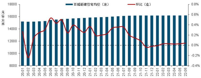 (2020年1月至2022年6月百城新建住宅均价及环比变化,中指研究院制表,央广网发)