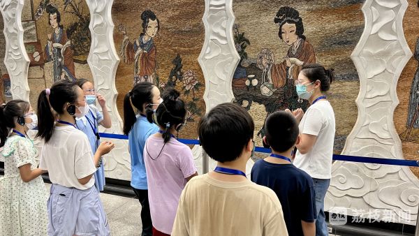 孩子们还走进大行宫地铁站,观看《大观园》《金陵十二钗》等主题壁画,在其中寻找红楼梦的人物,一块儿讨论这些人物的故事。