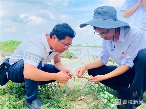 江苏农牧科技职业学院水产党总支书记林阿朋博士一行通过现场培训、实地指导、案例分享等方式,与水产养殖户共同探讨了河蟹“水鳖子”形成的原因和应对机制,引导养殖户从苗种选择源头抓起,注意养殖密度、养殖技术和池塘支撑等保障,让参加讲座的养殖户深受启发。当天,水产养殖党支部专家还来到养殖户老林的塘口查看养殖情况,检测水质,查看池塘底质以及水草分布和生产情况,现场提出了综合性评估和解决方案。