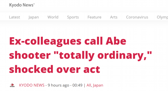 共同社:枪击安倍的枪手的前同事称他是“完全普通”的人,对他的行为感到震惊