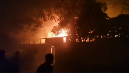 斯里兰卡示威者纵火焚烧总理私宅,视频截图。