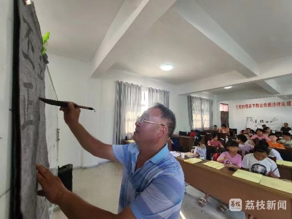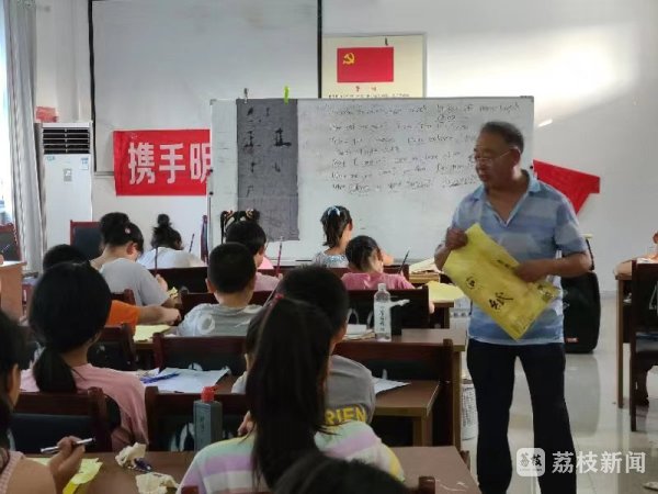 昨天(7月9日)一早,宿迁市泗阳县临河镇云渡村的“留守儿童之家”逐渐热闹了起来:70岁的退休教师付大中带着周边的孩子们练习书法、唱歌、背古诗……这些事付大中已经坚持9年了。“来这里的多数是留守儿童,放了暑假,孩子跟着爷爷奶奶,在外打工的父母也不放心。让他们多学一点知识,就是我坚持下来的动力。”付大中介绍,以前这个“留守儿童之家”是办在自己家的,现在村里借出了专门的场地,帮助他让更多的孩子来这里学习。