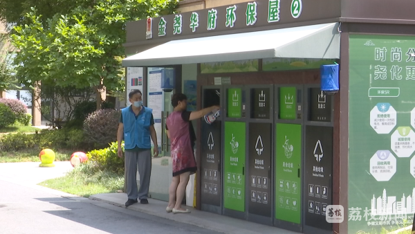 在南京栖霞区金尧华府小区,记者看到,这里不仅设立了垃圾分类集中投放点,还把垃圾分类行为与积分挂钩,用积分兑换生活用品,让居民有了看得见摸得着的好处,从而引导大家自觉参与到垃圾分类中来。
