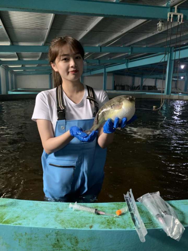 郑冰清,女,25岁,硕士,江阴市三鲜养殖有限公司职工,多年致力于水产养殖和增殖放流工作,坚持了数十年的河豚长江放流工作,使曾经绝迹4年的长江野生河豚重现长江。