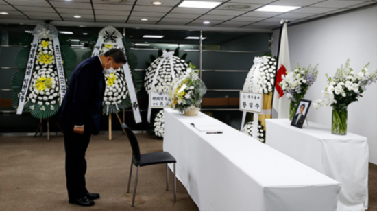 据韩联社11日报道,韩国外交部长官朴振当日前往位于首尔钟路区的日本驻韩大使馆公报文化院,在该日本使馆机构所设置的吊唁堂内吊唁日本前首相安倍晋三。