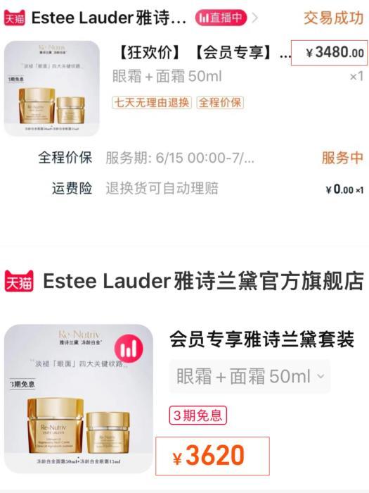 雅诗兰黛旗舰店同一款产品,6月(上图)与7月(下图)的价格变动。