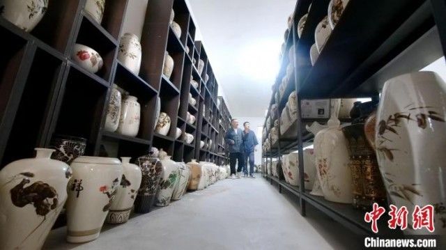 图为磁县磁州窑工作室内摆放的陶瓷制品。 崔岩 摄