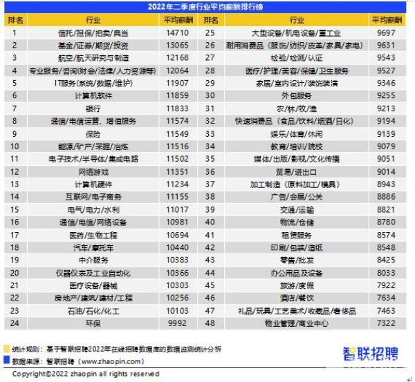而从职业方面看,智联招聘发布的此份《报告》显示,二季度高管、技术岗依然是高薪岗位。从薪酬变化看,生物/制药/医疗器械、电子/电器/半导体/仪器仪表、汽车制造、物流/仓储等职业薪酬涨幅较高。