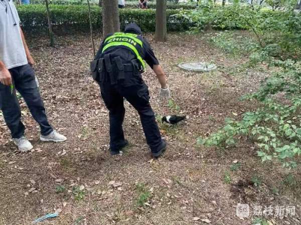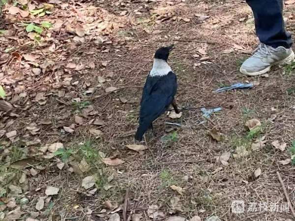 天热,一只白颈乌鸦“粘人求助”:渴了,要喝水。今天上午,南京市公安局江北新区分局通报了这起救助警情。