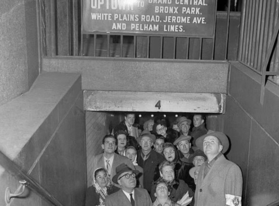 1951年,美国纽约百老汇,警报响起时,民众躲在地下道。(资料图)