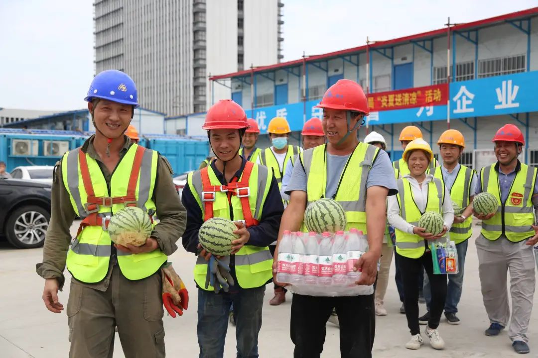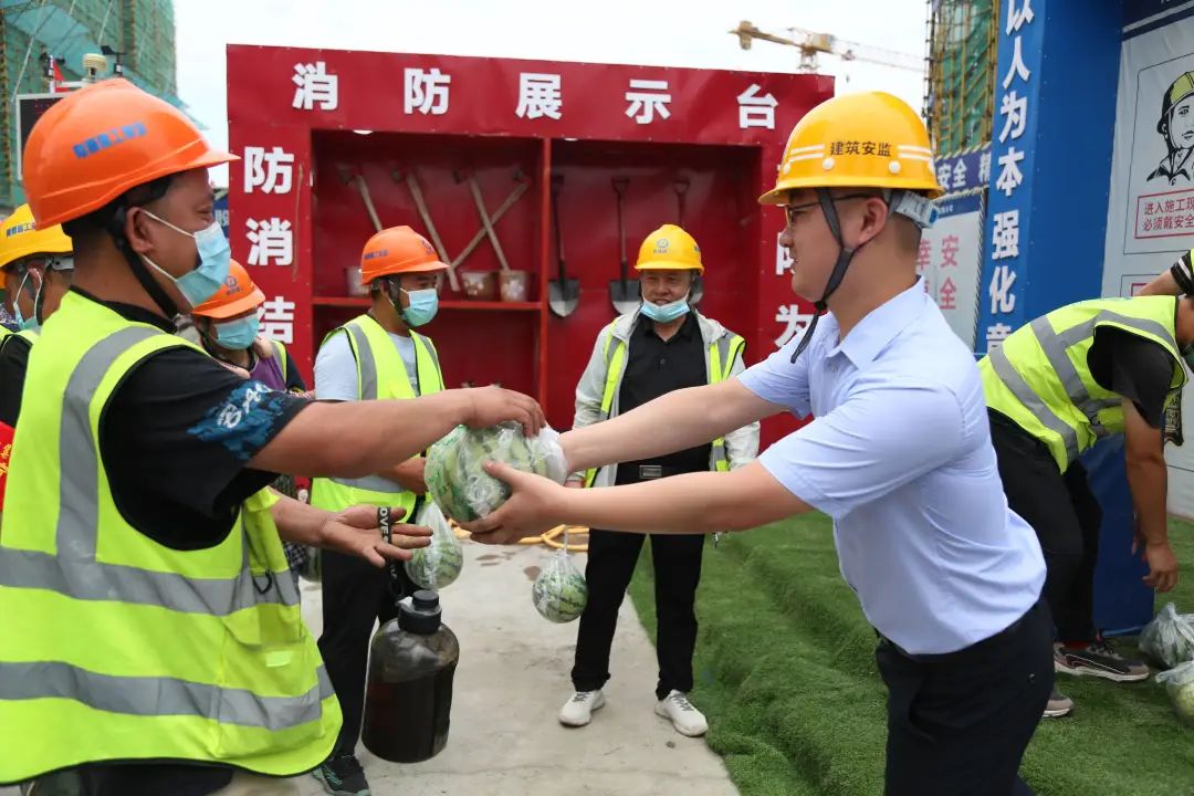 近日,区住建局工作人员深入工地开展“炎夏送清凉”活动,走访慰问高温期间坚守奋战在一线的建筑工人,将西瓜、矿泉水、清凉油等防暑降温用品一一发放到他们手中,对其辛苦付出和劳动表示感谢,并叮嘱项目负责人合理安排轮班作息,严格实行“抓两头、歇中间”的避高温措施,科学安排施工工序和工程量,并为施工人员配备必要的防暑用品,守牢安全生产底线。