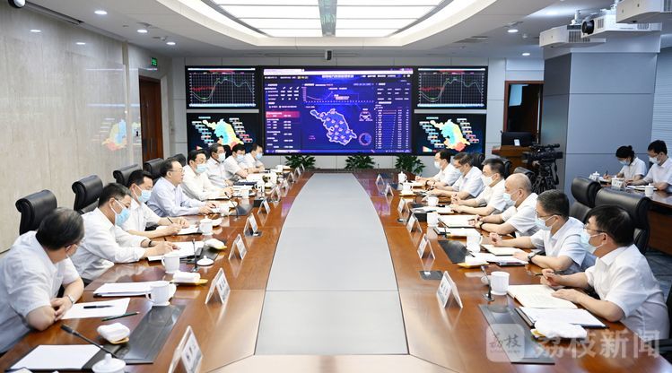 在国网江苏省电力公司,吴政隆听取全省电力运行、迎峰度夏工作情况汇报,详细了解电厂电煤储备、燃煤机组燃气机组最大出力、区外来电落实、新型电力负荷管理系统运行等情况。吴政隆指出,今年是党的二十大召开之年,做好电力保供工作责任重大、意义重大。特别是当前,高温天气持续多日,我省用电负荷连续高位运行,全社会用电量、工业用电量快速增长,既反映了经济加快恢复向好,也对迎峰度夏工作带来重大考验。希望国网江苏省电力公司胸怀“两个大局”、牢记“国之大者”,坚决扛起保供“主力军”的责任担当,增强忧患意识,做好万全准备,精心组织调度,安全稳定运行,以更加优良的作风、更加科学精准的举措做好电力保障工作,为人民群众创造平稳有序的生产生活环境。要密切跟踪天气变化、用电需求等情况全力保障供给,与政府职能部门和发电企业共同做好电煤和发电天然气组织供应,加强机组运行管理,确保高峰时段应发尽发、稳发满发,用好白鹤滩—江苏等特高压输电通道,统筹利用好风光电、核电等清洁能源,加强电力资源组织,最大限度增加高峰时段供给能力。要树牢底线思维,针对极端天气等突发情况,细化实化应急处置预案,加强对重要输电通道和各类设备的运维管控,及时排除故障隐患,强化电力网络信息系统安全,全力保障电网运行安全。在了解新型电力负荷管理系统运行情况后,吴政隆说,应对高峰时段电力供应缺口,要在抓好供给侧的同时,精准高效强化需求侧管理。要充分利用新型电力负荷管理系统,优先保障城乡居民、农业、重要公用事业和公益性服务等用电需求,优先调控企业非生产负荷和辅助生产负荷,切实做好需求响应、错峰避峰的工作方案,促进产业链供应链安全稳定。要更加关心关爱坚守一线特别是户外作业的广大职工,因地制宜做好防暑降温工作。