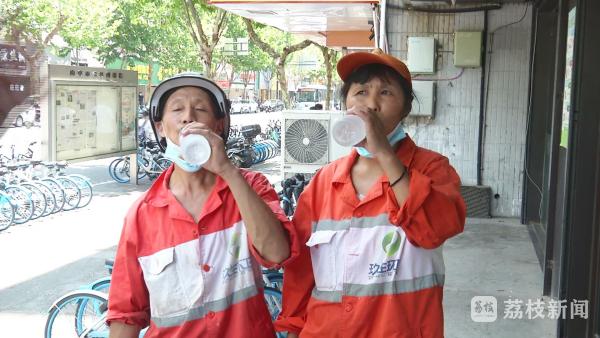 “我三个小孩呢,最大的37岁。小孙子才几个月,大孙子13岁。”欧传田从清凉补给站中取出矿泉水递给妻子:“现在社会各界对我们也很关心,店家可以给我们续杯添水,还可以到这里来领取冰水,给我们环卫工提供了很大的便利。”