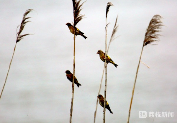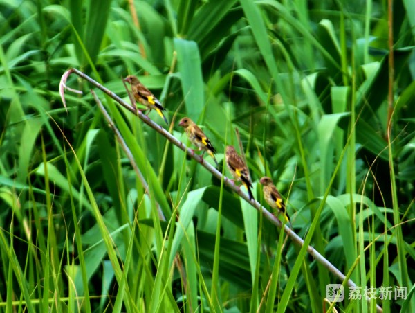 今天(7月12日)上午,南京鼓楼区滨江边飞来成群结队的小金翅雀,热闹非凡。这些鸟儿有时在金鸡菊草丛中觅食嬉戏,有时聚集芦苇竿上,犹如唱响大自然奏鸣曲。