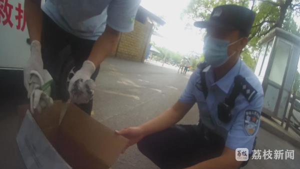 好心的张先生弄来纸箱,进入树丛将小鹰装进箱子。民警仔细观察后发现,这只幼年的小鹰似乎并没有受伤,很有可能是有些中暑导致其从树上掉下。民警随后立即带着小鹰前往红山动物园。