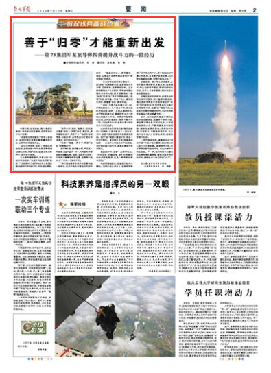 先进营接连败北,在该旅引起不小震动。党委议战议训会上,该旅领导强调:“任何单位和个人,都不能躺在功劳簿上吃老本,必须勇于自我归零,从失败中重新站起来,重整行装再出发。”