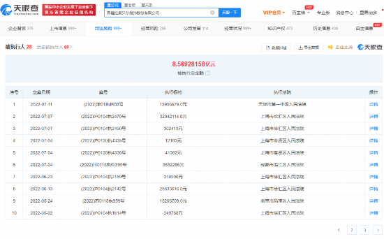 天眼查风险信息显示,新疆拉夏贝尔服饰公司目前存在多条被执行人、失信被执行人、限制消费令及终本案件信息,被执行总金额超8.5亿元,未履行总金额超5.1亿元。