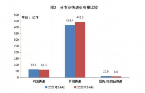 国家邮政局介绍,上半年,邮政服务业务总量累计完成1151.6亿元,同比增长6.6%;邮政寄递服务业务量累计完成142.1亿件,同比增长11.0%;邮政寄递服务业务收入累计完成199.1亿元,同比增长3.1%。全国快递服务企业业务量累计完成512.2亿件,同比增长3.7%;业务收入累计完成4982.2亿元,同比增长2.9%。其中,同城业务量累计完成61.3亿件,同比下降5.1%;异地业务量累计完成442.3亿件,同比增长5.7%;国际/港澳台业务量累计完成8.6亿件,同比下降21.4%。