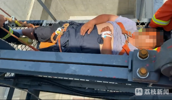 消防员到达现场后立即使用登高云梯车对被困人员展开施救,消防员先给被困人员系好安全绳,随后几名消防员相互配合共同营救被困人员,经过大约二十五分钟的紧张救援,被困人员成功被消防救援人员救出并送往医院治疗。