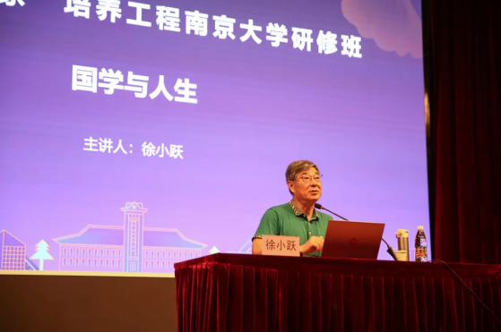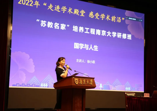 7月12日下午,“苏教名家”培养工程南京大学研修班继续为与会的校长和老师们带来精彩课程。南京大学中国哲学、宗教学博士生导师,南京图书馆名誉馆长,首批国家“万人计划”哲学社会科学领军人才,中央“马克思主义研究与建设工程”首席专家徐小跃教授为学员做了题为《国学与人生》的学术报告,太仓市科教新城实验小学校长、党支部书记吴敏敏主持本次报告。