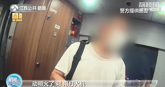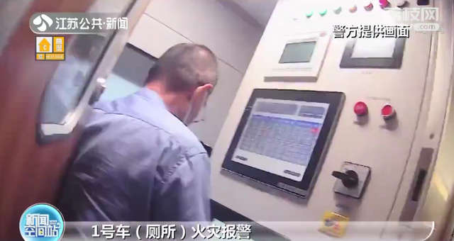 当时,列车刚从姜堰站开出不久,突然厕所内烟雾报警器紧急报警,列车长和机械师赶到厕所门口,发现有一名老人正好要出来,手里还拿着一个打火机,当时厕所内还有很大一股烟味:“你干什么的?”
