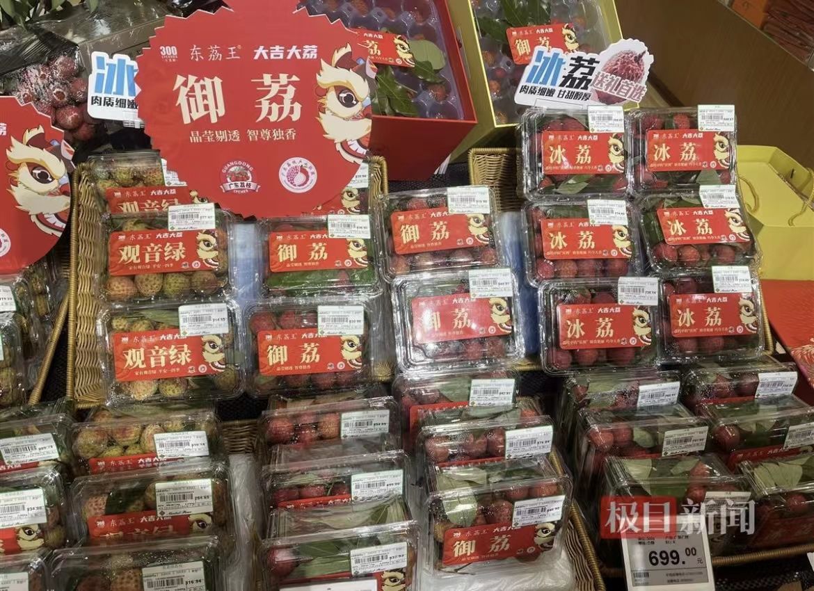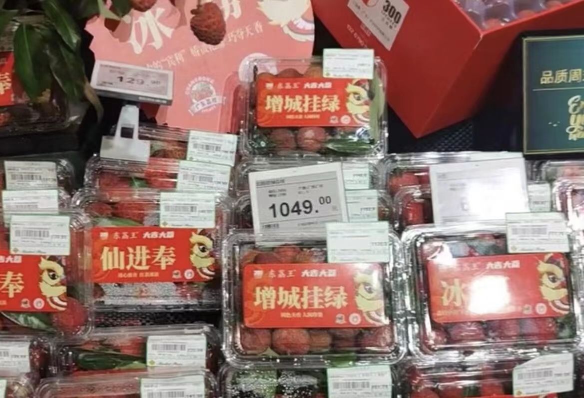 此前,有网友发文称,自己在超市购买了一盒名为“增城挂绿”品牌的荔枝,付款时才发现,这一小盒荔枝居然要969.28元。待仔细一看,这个品种的荔枝每斤单价高达1049元。网友调侃称,“躲过了雪糕‘刺客’,没躲过荔枝‘刺客’”。