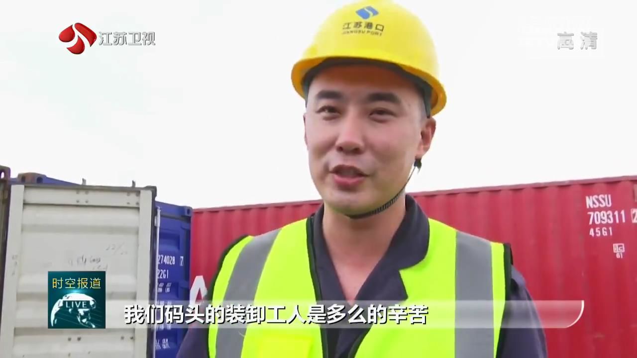 江苏台主持人 吴浩然:我现在是在南京港龙潭港区的集装箱码头,几乎所有经过南京的集装箱都要在这里出运。但是在高度自动化智能化的港口作业当中,仍有一些环节是人力必须参与其中的。今天,我们就来体验一下这些岗位。