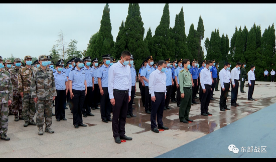 ▲全体肃立为革命烈士默哀。